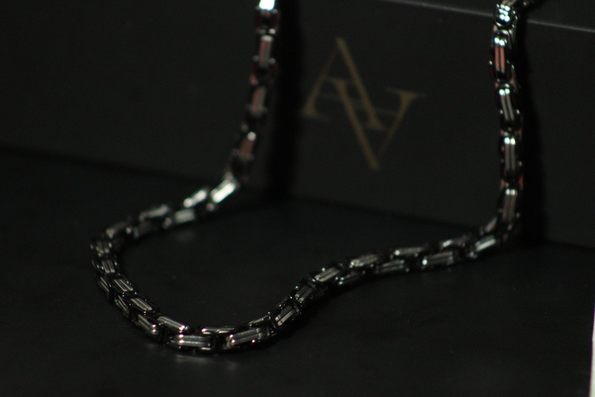 Elevate your style with this stunning Silver Black Byzantine Link Neck Chain. Crafted with precision, this chain features the classic Byzantine weave pattern that creates a sophisticated and timeless look.